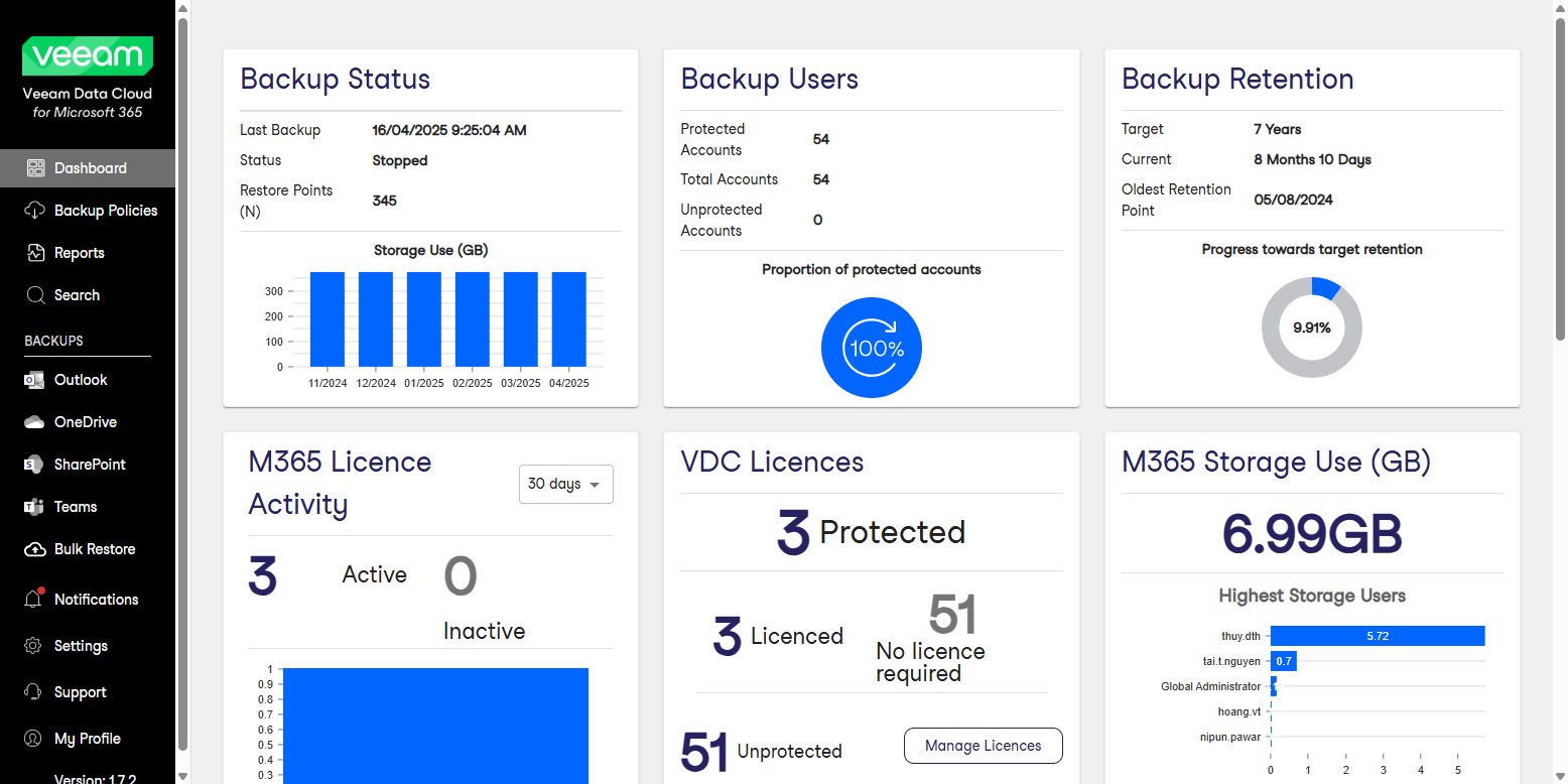 Veeam Data Cloud for Microsoft 365 provides unified, future-ready data protection for Microsoft 365 and Entra ID in a single, modern SaaS solution. Designed for organizations of all sizes, Veeam safeguards your critical Microsoft 365 workloads—including Exchange, SharePoint, OneDrive, Teams, and Entra ID—against cyber threats, accidental deletions, retention policy gaps, and misconfigurations.