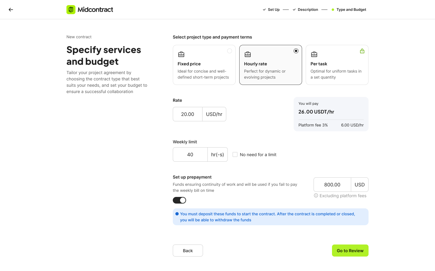 Protect your earnings with 100% escrow coverage for all service contracts. Say goodbye to payment delays and non-payments! Midcontract ensures fast, secure transactions in both fiat and crypto, with milestone-based releases that keep your funds safe until project completion.