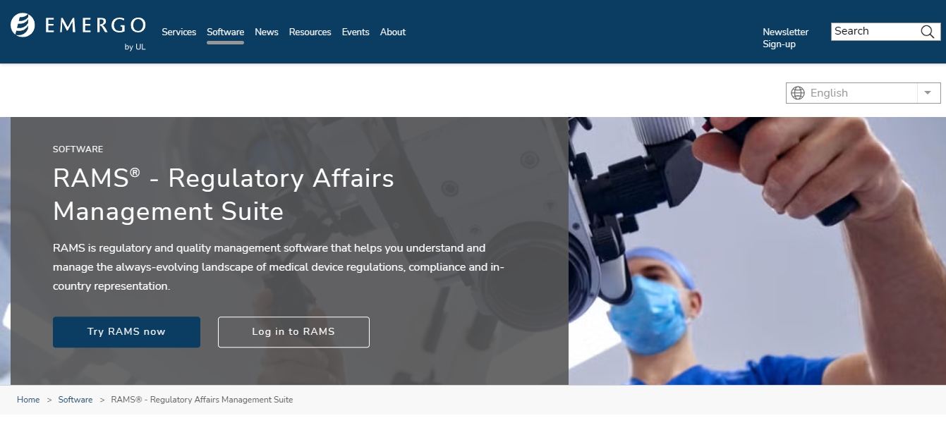 Emergo by UL's Regulatory Affairs Management Suite (RAMS) is a comprehensive software-as-a-service platform designed to streamline regulatory and quality management for medical device and in vitro diagnostic companies. Leveraging decades of regulatory compliance expertise, RAMS offers a suite of tools to navigate the complex and evolving landscape of global medical device regulations. Key features include product classification, which guides users through a series of questions to determine or verify device classification, and Smart Builder, a tool that provides step-by-step guidance and templated text to create accurate regulatory documentation, facilitating smoother device registration and faster market access. The Registration Tracker automates the tracking of global registrations and certifications, helping organizations avoid missed renewals and maintain compliance.
