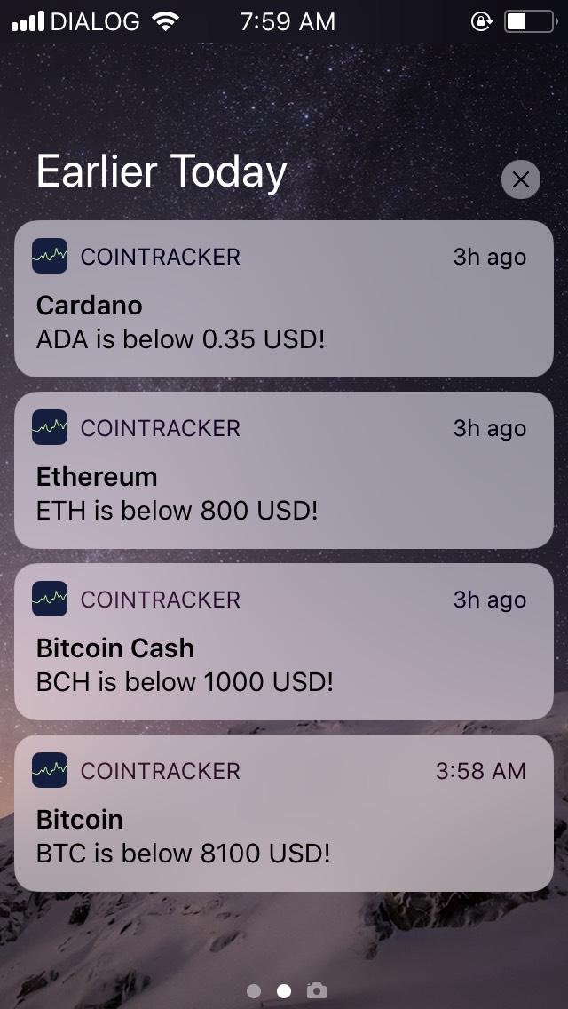 CoinTracker is a simple and elegant privacy-first mobile application to track your cryptocurrency portfolio. App provides all major cryptocurrency information in real-time including profit/loss of your portfolio for making your trading decisions on fingertips. Some key features include real-time price tracking, conversions between fiat currencies, historical data in beautiful charts, unlimited price alerts, multiple cryptocurrency portfolios, crypto news feeds, ERC-20 tokens, prices in exchanges, passcode and security