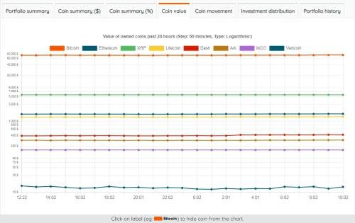 Your cryptocurrency portfolio. Free for everybody, easy to use and available 3 587 cryptocurrencies. Do you own cryptocurrencies? Follow prices of your coins in a single table with cool charts. There is no subscription plan. There are also no paid upgrades. Everything is fully accessible for free. All you have to provide is your email. Verification is not required. But you are going to need access to this email for recovery of your forgoten password. To find out more about our usage of cookies visit the "Privacy Policy" section at the bottom of the page. We are offering all the main cryptocurrencies. Currently it's 3 587 coins! More coins are added every week. You don't need any special app. You only need website browser (eg. Chrome, Firefox, Opera...) and you can check you cryptocurrency portfolio from any device. Submit the amount of coins that you own and how much you spent on them. That's it! Now you can watch up-to-date rates, portfolio performance and even access charts.