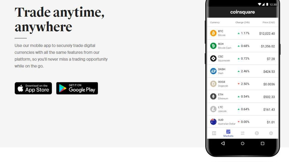 The world's home for digital currency. Securely buy and trade Bitcoin, Ethereum, and more. Coinsquare's QuickTrade feature instantly makes trades between any two currencies, whether it's XRP to Ethereum, or Litecoin to EUR. Coinsquare's platform is 100% proprietary. We are SSL and 2FA enabled, with a 95% cold storage policy on all digital currencies, and we run multiple encrypted and distributed backups every day. Our low, transparent fees and no trading minimum make it so everyone can take advantage of digital currency. Conveniently trade from any device, and get help from our expert support team whenever you need it. Download the Coinsquare mobile app to keep an eye on the markets and make trades at the perfect moment, wherever you are. Your Coinsquare dashboard is packed with robust charts and sophisticated features, so you can review the entire digital currency market and trade wisely.