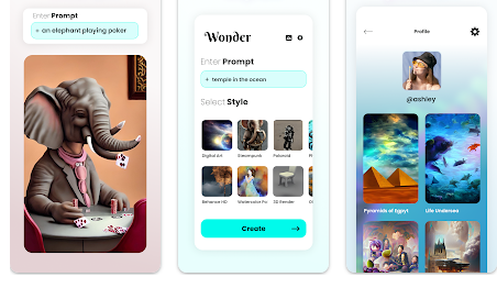 Turn words into mesmerizing digital artworks! All you need to do is enter a prompt, pick an art style - and watch Wonder bring your idea to life in seconds! It’s super simple: Simply describe what you want Wonder to paint, such as “life under sea” or “shattered rainbow”, pick a style (cubist, Dali, synthwave, steampunk, etc.), or select “no style”; and hit create! Once you have your completely unique, original artwork; feel free to share it with friends or hop on the latest #AIPainting trend on social media. You can choose from a range of familiar art styles, from ornate baroque paintings to futuristic synthwave landscapes and everything in between. Get ready to hear questions such as “I love your lock screen, who’s the artist?”, then you can proudly answer “I did it myself!” Ready to test your creativity with the mind-boggling powers of AI? Try Wonder today & see the wonders you can do!