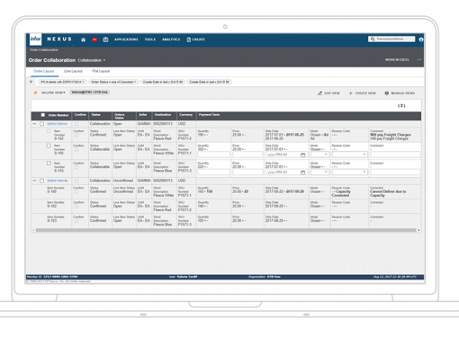 Infor Nexus™ is the world’s leading business network for multi-enterprise supply chain orchestration and optimization, connecting businesses to the entire supply chain for enhanced supply chain visibility, collaboration, and predictive intelligence. With advanced planning, execution, and finance capabilities, businesses can intelligently sense and respond to supply chain activities in real-time. Leverage predictive intelligence for proactive sense and response. Enable interoperability across multiple vendor systems of record. Rely on a single version of truth across all supply chain partners. Conduct global shipment planning and optimization from origin. Strengthen the supply chain and improve working capital. Continually monitor demand and supply signals in real-time. Manage complex international supply chain flows to optimize both freight spend and shipping performance. Synchronize systems and service providers across modes and geographies for improved control and reliability.