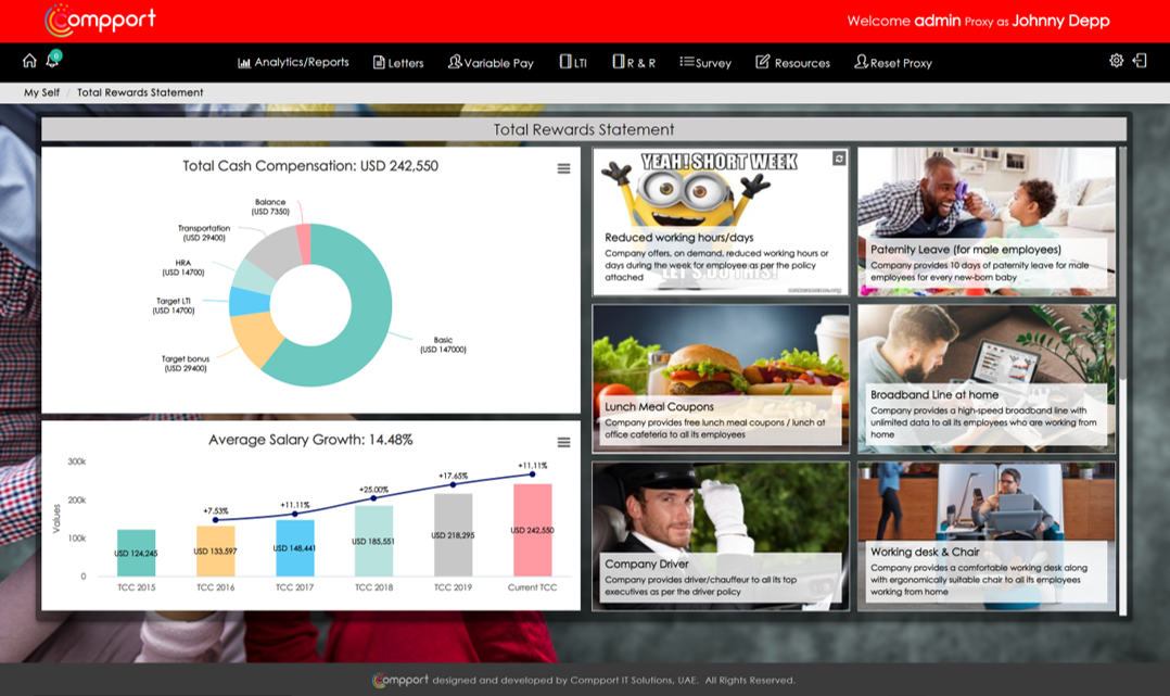 It is a unique 100% modular solution that enable users to design single/multiple compensation plans with 100% flexibility, compare, and assess the impact and budget upfront, launch it to the line managers for review of salary related components for their respective teams and then enable communication with employees in a digital form to provide access of letters and total rewards statements, etc.