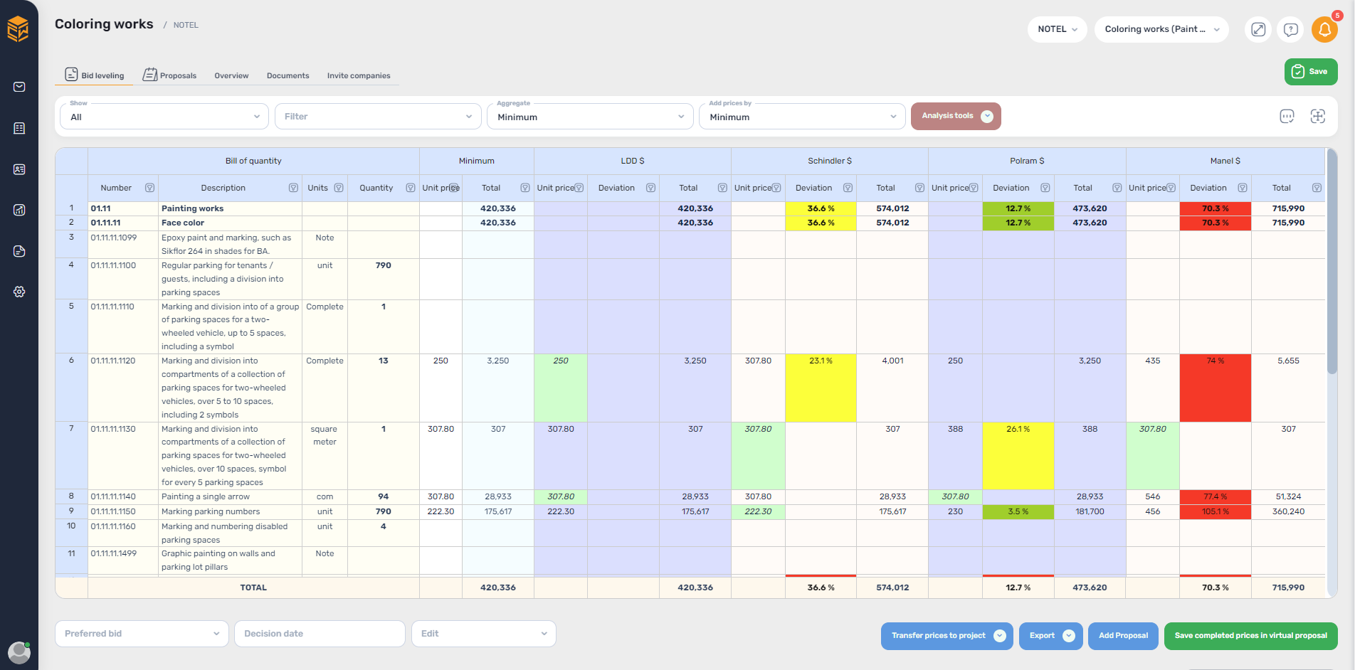 Tenders pipeline management, subcontractors bidding automation, advanced estimating tools, indirect costs and profit loading tools, Tender KPI analytics, and more.