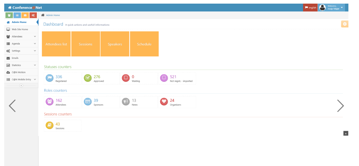 Conference @Net is an innovative and easy-to-use online platform that helps event organizers create successful conferences, workshops, or exhibitions by empowering them to publish content, agenda, logistic details, send save-the-dates and newsletters, do easy online registration, and publish content in mobile applications. Generate an event website and mobile app, manage sessions and speakers, and register attendees. iOS, Android, and Windows Phone conference apps. Compatible with various desktop, tablet, and mobile devices. All major browsers are supported. Motion and gesture-controlled user interface. Providing everything you need for managing your conference content, attendees, sessions and agenda, speakers, rooms, and everything else that you need for successful conference organization. Now it is easier than ever to manage complex and demanding activities in the process of organizing events.