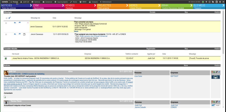 Coneix optimizes your time and successfully manages your engineering business, architecture office or professional services company, anytime, anywhere. It centralizes the relationship with clients, monitoring of business opportunities and unifies the organization's contact database. Improve team communication, allocate resources, plan and control tasks, record hours, monitor the budget and its deviations, document management. Margin by projects in one click. CONEIX incorporates Tableau as a BI tool. Personalized dashboards for each job and ensure that all decisions are made with reliable information and in real time. Preparation and monitoring of budgets. Quickly generate and send sales invoices and record purchase invoices. Integrate data with accounting, forecasting and monitoring of collections, payments and treasury.