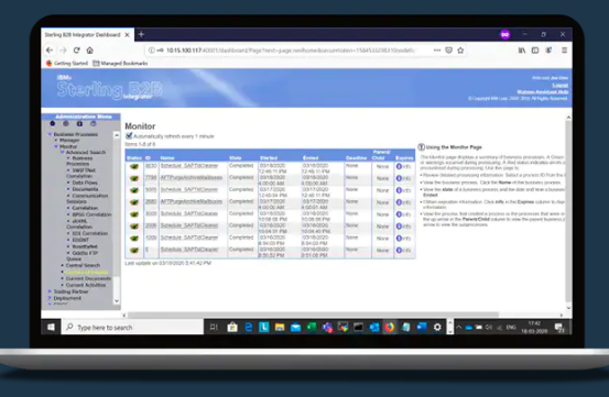 IBM® Sterling B2B Integrator helps companies integrate all their complex B2B and EDI processes across partner communities in a single gateway. It provides a flexible platform, available on-premises or through hybrid cloud, that supports data transformation and most communication protocols; secures your B2B network and data; provides certified container support; and achieves high availability for operations with IBM Sterling Global Mailbox. B2B Integrator enables you to reduce costs by consolidating on a single platform and automating B2B processes across enterprises while providing governance, adherence to standards and visibility for those processes. High-availability gateway platform built for the most demanding environments, with global mailbox options for geographic distribution and real-time data replication. Significantly reduce installation and patch time from hours to minutes by deploying your solution with a certified container that has all required components.