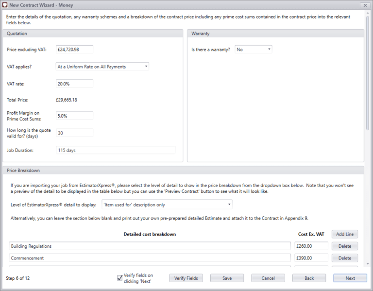 Even the friendliest of customer relationships can turn sour. Which is why it’s really important to have your building projects properly legally covered. With our exclusive Small Works Business-to-Business contract, Consumer contract and Subcontract contract you stand a greater chance of winning the job and being paid on time for ALL the work you’ve carried out. Our legal team has done the hard graft and the software writes the contract for you. You answer some questions and print off the paperwork in minutes! The software also automatically produces a cover letter with your contract. It’s been written by experts and makes everything crystal clear. Select your payment terms by Build Phase, milestone or specific days, so both you and your customer know where you stand.
