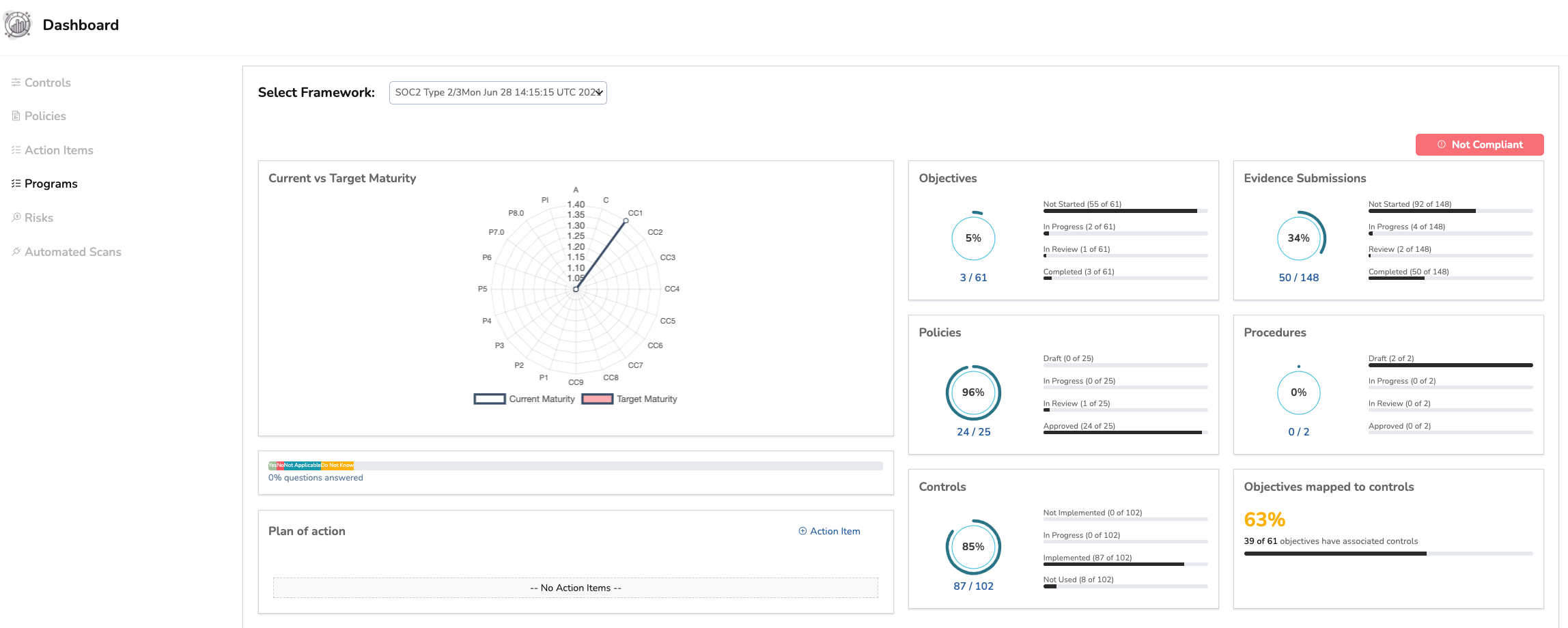 SOCLY.io is a compliance automation platform designed to help businesses streamline and manage complex regulatory and security requirements by centralizing evidence, documentation, and tasks into a unified system, reducing manual work and errors while improving audit readiness and operational efficiency. It supports major frameworks such as SOC 2, ISO 27001, GDPR, and other standards, automates risk assessments, compliance tracking, and audit workflows, and provides pre-built policy templates and real-time progress monitoring so teams can stay on top of requirements without disrupting daily operations. SOCLY.io integrates with existing tools and systems to pull evidence automatically, simplifies policy creation, and centralizes compliance documentation to cut weeks or months off traditional compliance timelines.