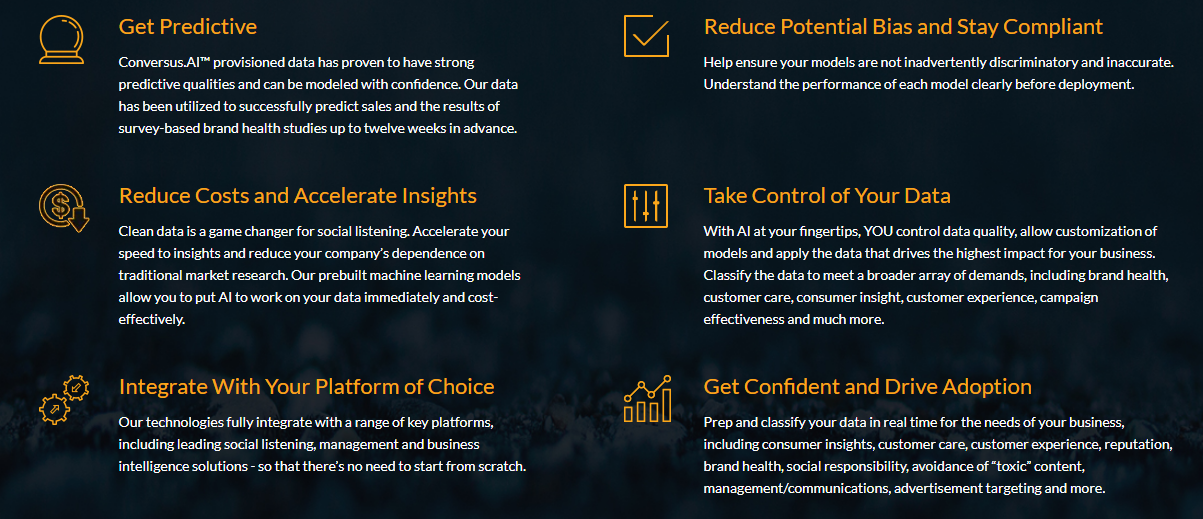 Take control of your models with the leading Machine Learning-as-a-Service Platform for unstructured social and voice-of-customer text analytics. Our experienced team of experts can help you build highly-advanced, bespoke social models to leverage, deploy, generalize and utilize your information properly. Align your social listening initiatives with best practice AI strategies for transparency, accuracy and fairness. New to social listening or want to advance the effectiveness of your solution? We provide the industry’s most experienced team to help guide your journey. You have the data but now want to discover critical insights. We provide a wide range of industry-leading programmatic insight solutions powered by our AI classifiers. Choose from a robust library of industry-based prebuilt machine learning models for immediate deployment. Help ensure your models are not inadvertently discriminatory and inaccurate. Understand the performance of each model clearly before deployment.