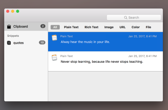 Extend your clipboard with the all-new CopyLess 2, a clipboard manager for Mac. Completely overhauled, redesigned from the bottom-up, and reimplemented in Swift, for performance, stability, and comfort. Everything you copy or cut inside other applications is instantly captured and saved by CopyLess 2 for later use. The history is huge, CopyLess can store up to 1000 recent clippings. Saved clippings can be previewed and easily reused, an ideal help for text and image editing, programming, customer support, frequently used command-line tool snippets, etc. Extend your clipboard up to 1000 recent items and unlimited favorites. Mark frequently used clippings as favorites to keep them around. Sync favorite clippings to your iCloud account. Search clippings by application name, content, or title. Set your preferred background color, text color, font size, row height, and transparency. Access most frequently used features with just a shortcut.