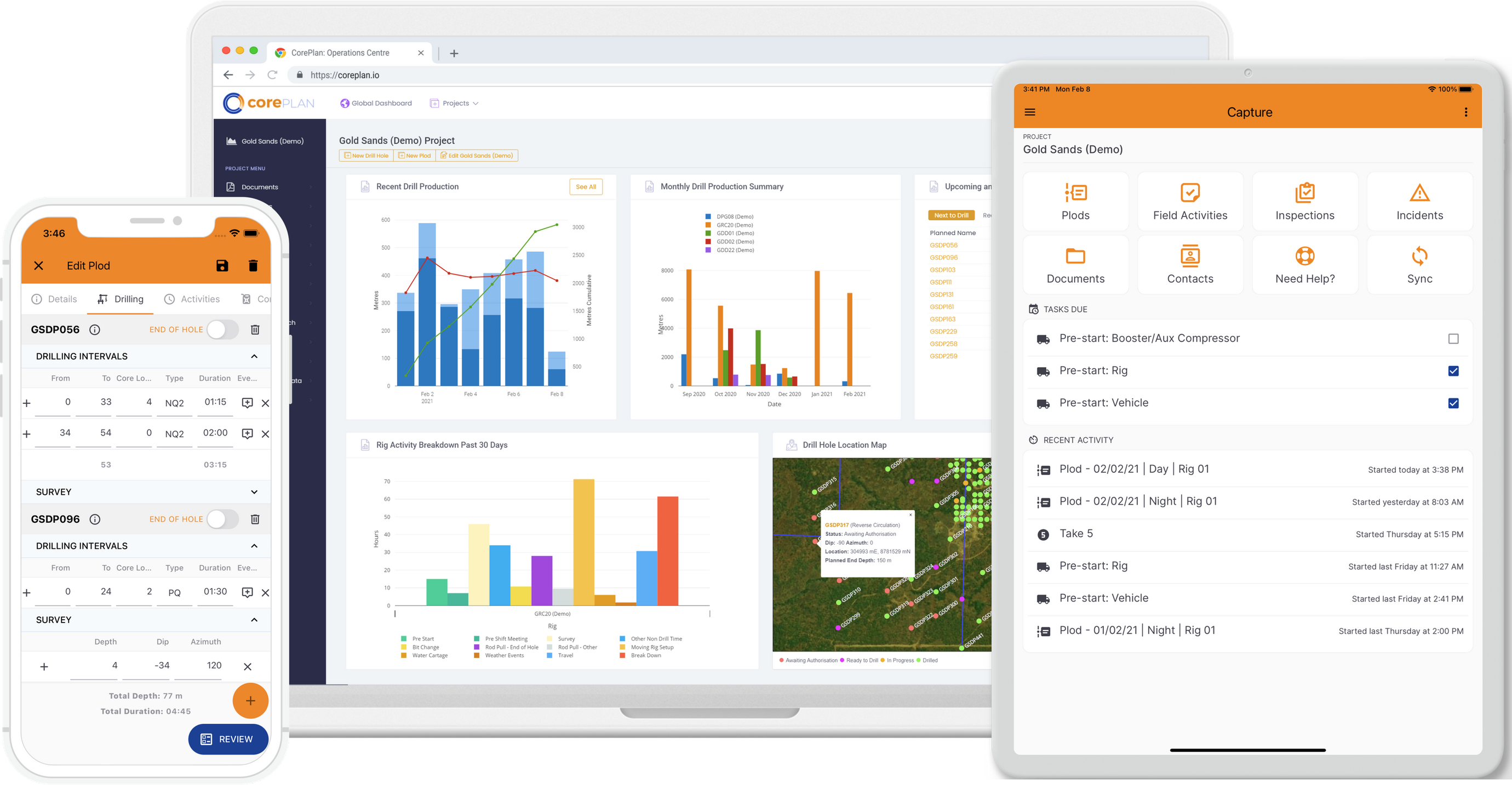 For exploration companies, CorePlan works by providing one place for their entire team to plan drill programs, track production, manage samples and safety.
