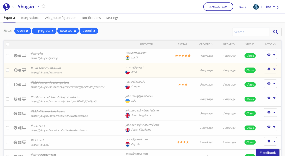 Ybug allows website users to send visual feedback with annotated screenshots, and automatically attaches contextual information about user environment. Ybug automatically includes environment details such as site URL, user’s browser, operating system or display size, and captures Javascript errors and console output. Debugging has never been easier. Get all the important information you need to fix the bug. T