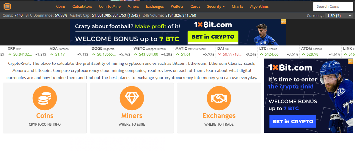 CryptoRival the place to calculate the profitability of mining cryptocurrencies such as Bitcoin, Ethereum, Ethereum Classic, Zcash, Monero and Litecoin. Compare cryptocurrency cloud mining companies, read reviews on each of them, learn about what digital currencies are and how to mine them and find out the best places to exchange your cryptocurrency into money you can use everyday. You've mined a bitcoin, now what? Read about exchange services where you can turn your cryptocurrencies into fiat currency or another cryptocurrency. These exchanges offer BTC, ETH, USD, GBP, EUR and more. Read about fees, commission, payment methods and more. We have reviewed various cloud mining services, including payment options, contract lengths, where they're based, videos published by the company and their social networks so you can check them out for yourselves.