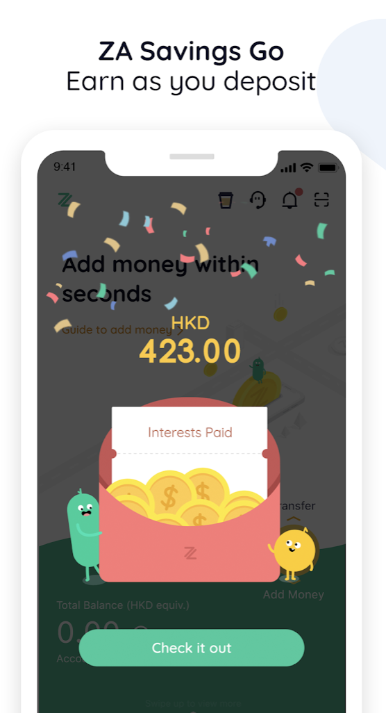 ZA Bank Business Banking is here! We look forward to working with our local SME partners to unlock growth together. We offer unsecured revolving term loan with flexible drawdown date and repayment term. No interest is payable on unused credit. Please contact your relationship manager or call our customer service hotline for details. Time deposits are available in HKD, CNY and USD, offering you flexibility to place time deposits anytime from Monday to Sunday throughout the year. Payment made easy with just a wave of your card. No swiping or signing needed. Verify the transactions within the app in seconds, giving you a smoother and safer online shopping experience. Lock and unlock your card with one tap in the ZA Bank app. Receive instant notifications for each transaction and fully control your transaction limits.