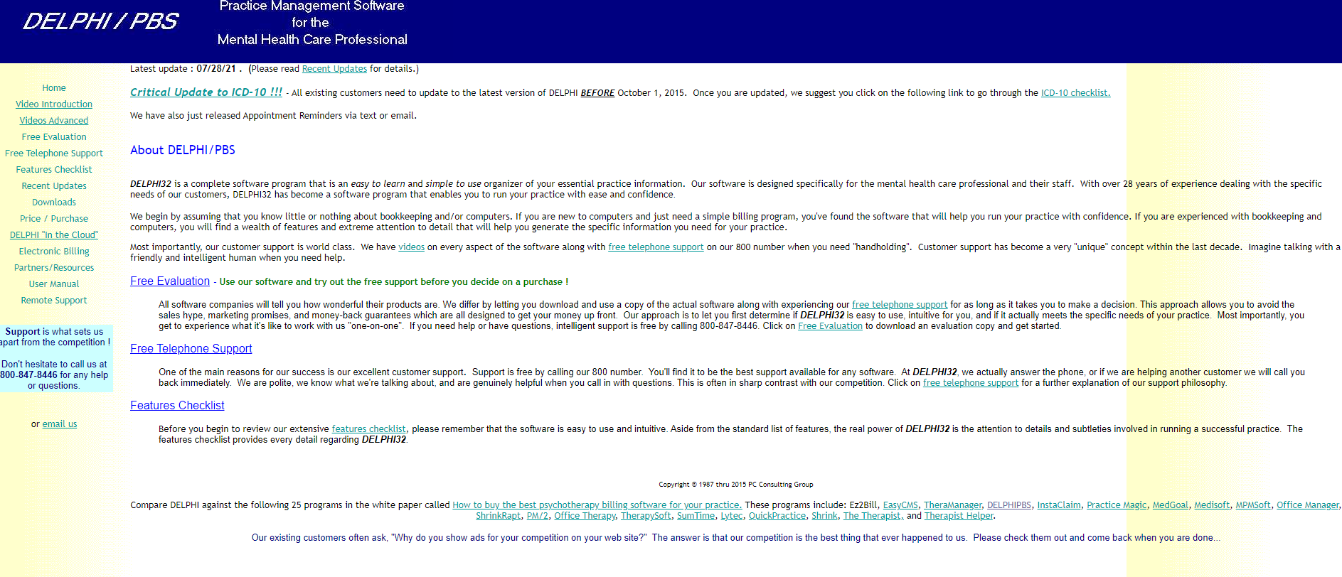 DELPHI32 is a complete software program that is an easy to learn and simple to use organizer of your essential practice information. Our software is designed specifically for the mental health care professional and their staff. With over 28 years of experience dealing with the specific needs of our customers, DELPHI32 has become a software program that enables you to run your practice with ease and confidence. We begin by assuming that you know little or nothing about bookkeeping and/or computers. If you are new to computers and just need a simple billing program, you've found the software that will help you run your practice with confidence. If you are experienced with bookkeeping and computers, you will find a wealth of features and extreme attention to detail that will help you generate the specific information you need for your practice.