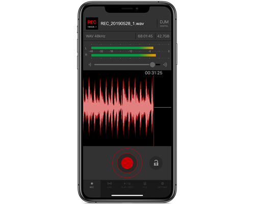 Our high-quality DJ mix recording app, the DJM-REC, allows you to efficiently record then easily archive your mixes via iPhone or iPad. The DJM-REC controls the peak limiter in the DJM mixer to minimise clipping and distortion rather than needing to be done manually on the recording device. The DJM-REC easily connects to DJM-series mixers equipped with the send/return feature* using a single USB cable. You can try DJM-REC free for 30 days with full access to all features. Mixes recorded during the trial period will remain available for listening and sharing after the trial has ended. To continue using the app after the trial period you can upgrade to the paid version. Control the peak limiter in your DJM mixer via the app and alleviate digital clipping with the tap of a button. Record audio from a digital mixer directly into digital format, eliminating the need for analogue conversion.