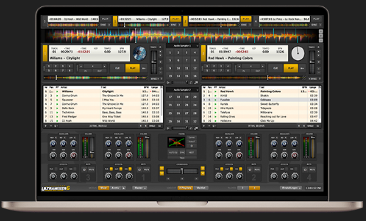 Additional Playlist mode with database backed FileArchive including quick search and iTunes mixing. Check out the freely customizable user interface. Prepare your tracks using the unique 4-player mode. High precision colored waveform 16 channel jingle machine for video and audio samples. Over 80 native supported MIDI controllers. These Features include video & karaoke mixing, live visualization, live text in HD quality, slideshow functionality, live camera, and much more! AutoDJ, crossfader and equalizer, 16 audio samples. Widgets include fading, mixer, special FX, audio sampler, cover, artist information, and clock. Choose your language, English, German, French, Dutch or Japanese. UltraMixer Home has all features you need to start in the world of digital DJing and play music at the next house party. Import your playlists from iTunes or Apple Music, create your own DJ-Mix or use the “Auto DJ” and play your songs like a Jukebox in the background.