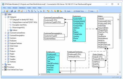 DTM Data Modeler is a CASE tool for database developers that supports both forward and reverse engineering. It is an easy-to-use tool allowing you to work both with logical and physical data models in the form of an entity-relationship diagram. The product is intended for database architects and developers and works with data sources via the ODBC interface, which means compatibility with all modern DBMS. Along with basic model properties (sets of entities and relationships between them), the program allows you to create indexes and triggers on the physical level corresponding to the tables of the database that is modeled. The foreign key migration feature makes schema development easier and more visual and also reduces the probability of errors in the integrity of the model. The program can create database schema objects directly in the database as well as create SQL scripts corresponding to the model and taking into account the settings specified by the user.