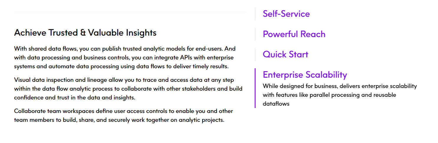 The most successful businesses have common denominators: maximizing organizational efficiencies, mitigating risk, growing revenue and innovating – fast. Data360 Analyze is the fastest way to aggregate and organize large amounts of data to uncover valuable insights across business units. Easily access, prep and analyze quality data through its intuitive browser-based architecture. A solid understanding of your organization’s data landscape can shed light on disparate data sources, missing and outlying values and anomalies in data logic. Accelerate the discovery, validation, transformation and blending of data from across your organization to deliver accurate, relevant and trusted information for analysis. Visual data inspection and lineage allow you to trace and access data at any step within the data flow analytic process to collaborate with other stakeholders and build confidence and trust in the data and insights.