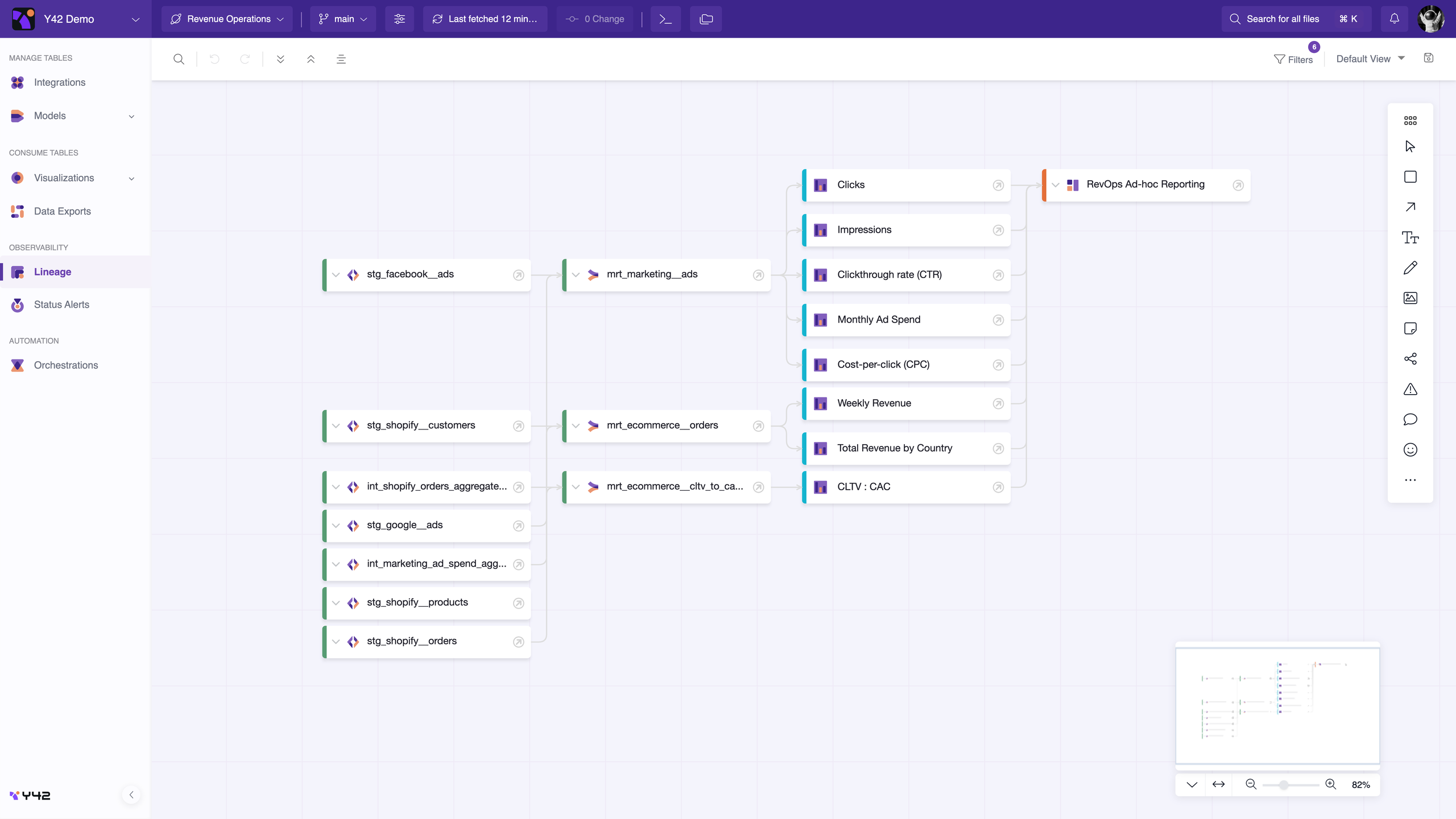 Y42 is the first fully managed Modern DataOps Cloud. It is purpose-built to help companies easily design production-ready data pipelines on top of their Google BigQuery or Snowflake cloud data warehouse.