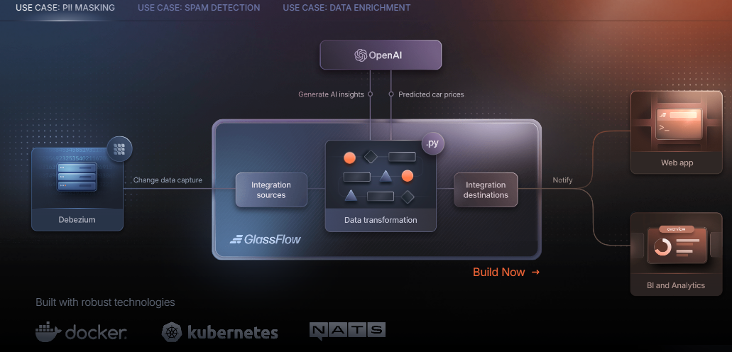 GlassFlow is a serverless, event-driven data pipeline platform designed for Python developers. It enables users to build real-time data pipelines without the need for complex infrastructure like Kafka or Flink. By writing Python functions, developers can define data transformations, and GlassFlow manages the underlying infrastructure, offering auto-scaling, low latency, and optimal data retention. The platform supports integration with various data sources and destinations, including Google Pub/Sub, AWS Kinesis, and OpenAI, through its Python SDK and managed connectors. GlassFlow provides a low-code interface for quick pipeline setup, allowing users to create and deploy pipelines within minutes. It also offers features such as serverless function execution, real-time API connections, and alerting and reprocessing capabilities. The platform is designed to simplify the creation and management of event-driven data pipelines, making it accessible for Python developers.