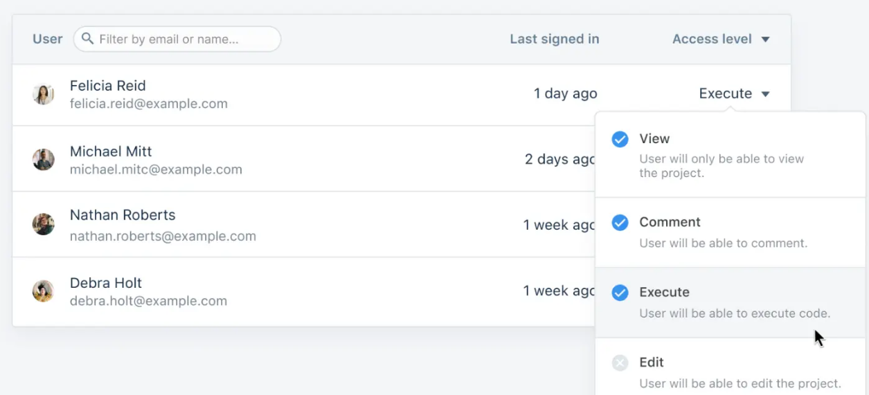 - Set team permissions to decide who can edit vs view code