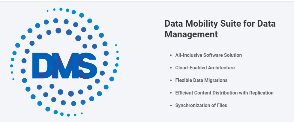 StorCentric Data Mobility Suite (DMS), an all-inclusive software solution, empowers organizations to seamlessly move data where it needs to be. DMS is a cloud-enabled solution that supports data migration, data replication, and data synchronization across mixed environments including disk, tape, and cloud to maximize ROI by eliminating data silos. DMS supports vendor-agnostic file replications and synchronization and is easily deployed and managed on a non-proprietary server. DMS can transfer millions of files simultaneously and protects data in transit to and from the cloud with SSL encryption. DMS streamlines point-to-point data movement and tackles data flow requirements from any storage platform to another. Fine-grained filtering and continuous incremental updates alleviate the challenges of moving and consolidating data across heterogeneous environments. DMS enables files to be synchronized across multiple storage repositories, including disk and tape.