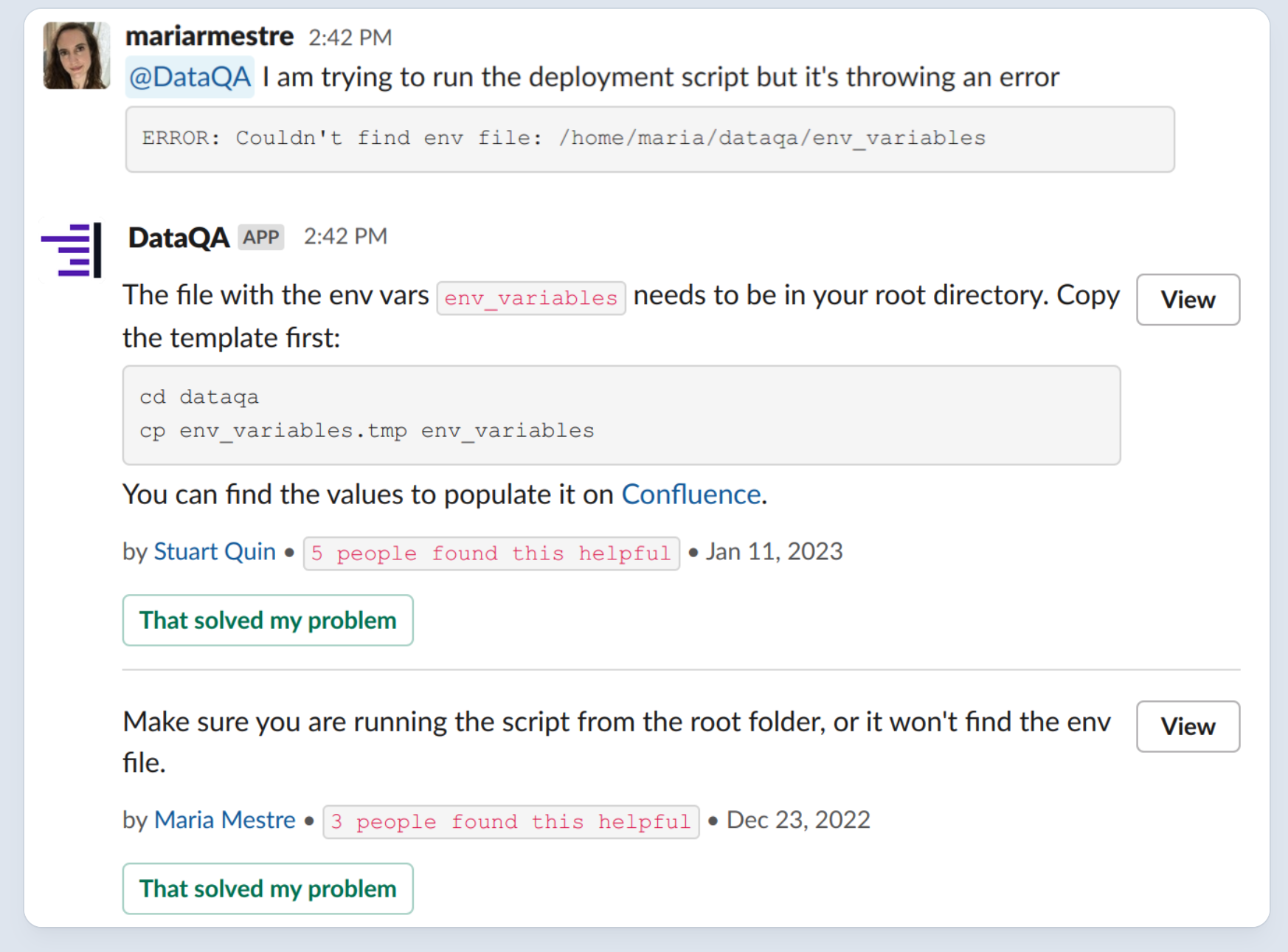 Better access to information increases productivity, accountability and employee onboarding success. Bookmark important product discussions, screenshots, explainers. Keep track of links and content shared about companies and market trends. Save frequently asked questions to help new joiners. Follow topics of interest and get digests so you never miss anything. Save frequently-asked questions, shared screenshots and important discussions. Improve the onboarding experience for new joiners and senior employees. Unlike other apps, you don't need to leave Slack or rewrite any content. DataQA just works off your current flow.