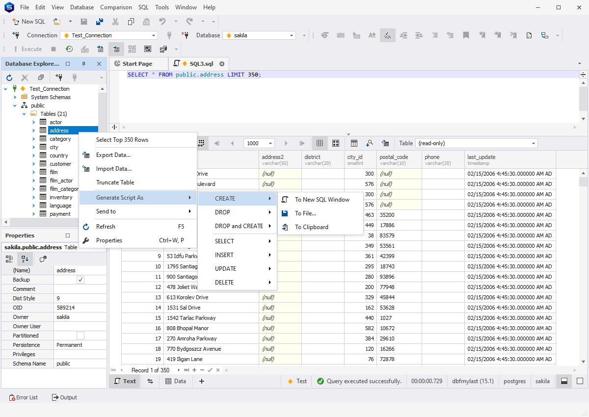 dbForge Studio for PostgreSQL is a GUI tool for database development and management. The IDE for PostgreSQL allows users to create, develop, and execute queries, edit and adjust the code to your requirements in a convenient and user-friendly interface. The tool provides a data editing tool to customize your queries and property window so that users can view all the required information of PostgreSQL database objects they are interested in.