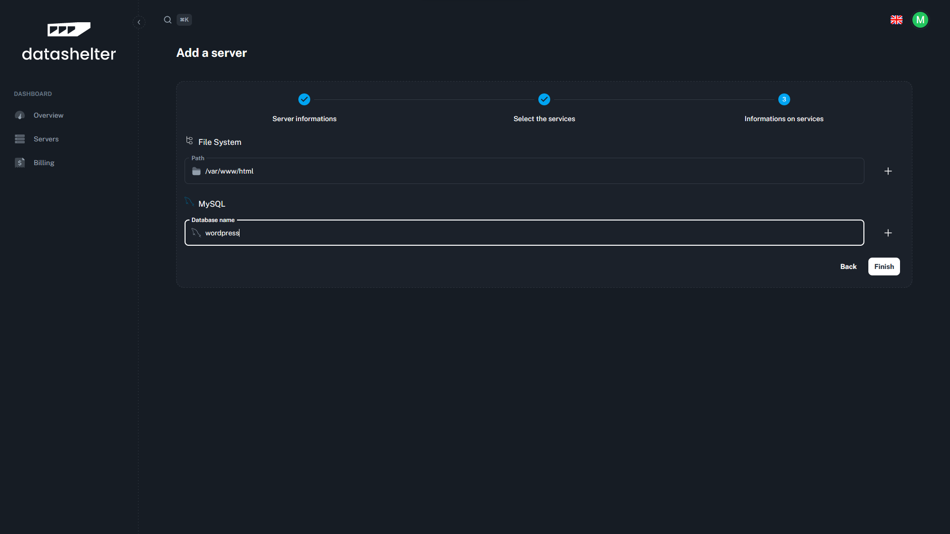 Whether it's files or databases (MySQL, PostgreSQL, or MongoDB), Datashelter has you covered.