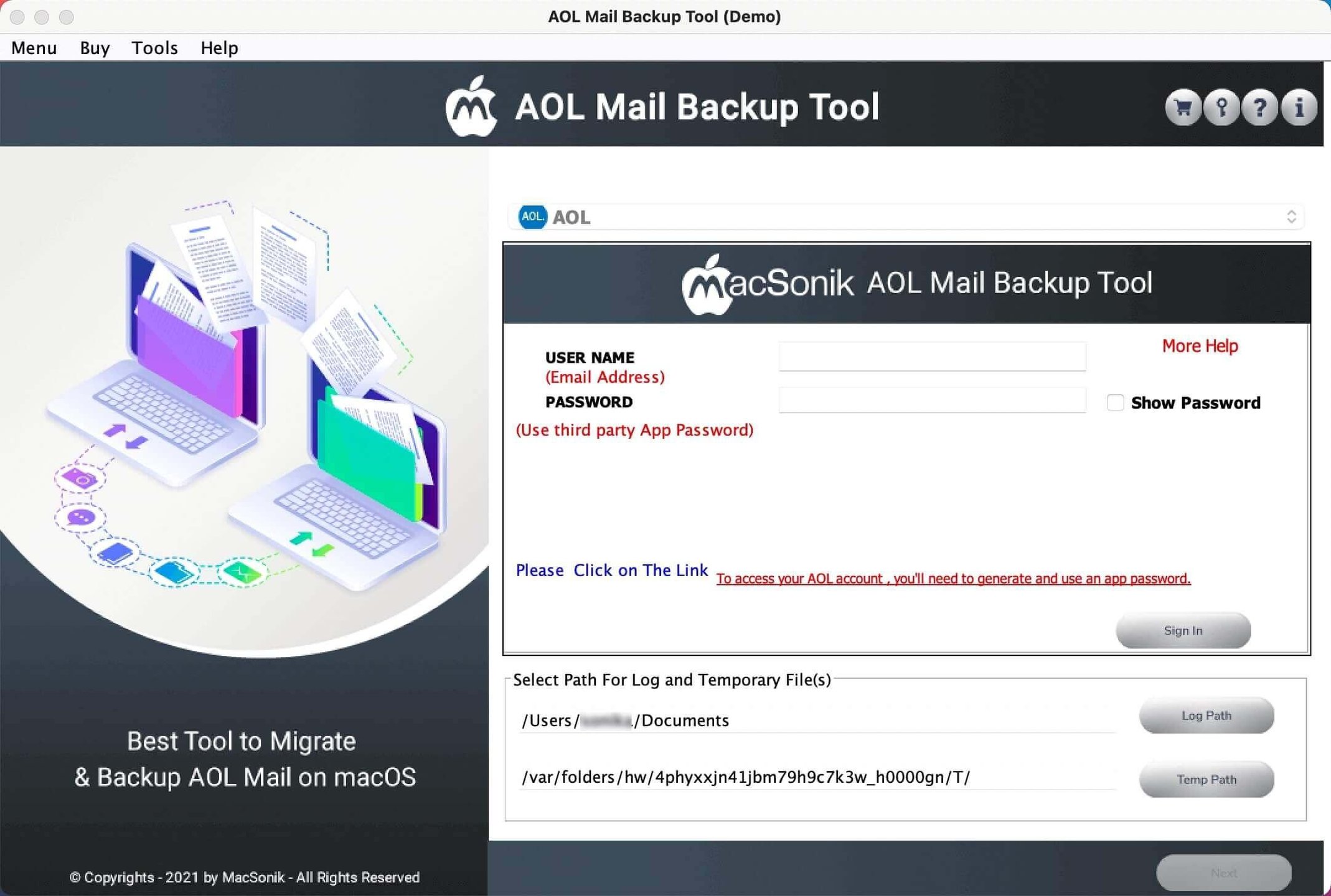 MacSonik AOL Backup Tool is the most recommended tool for Mac users to backup and converts AOL emails into multiple file formats and email clients on Mac. The software can bulk/single migrate AOL emails with or without email attachments on Mac OS by preserving the original folder hierarchy. It has an advanced feature that allows the users to set the backup schedule of AOL emails and free up the AOL server space after the backup process completes. Users can also remove similar emails while performing the migration or backup process. They are also allowed to skip the previously converted items from the current process. Users can backup and convert selected emails only by using the Mail Filter option. It has a smart preview option that allows the users to view the files just before the conversion process. Additionally, users can set the custom folder name with the location of the resultant file. This software is fully compatible with all the updated versions of Mac OS.