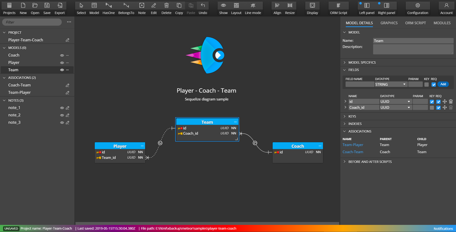 Define Sequelize models, fields and associations visually. Enhance diagrams by adding notes, comments, pictures and hyperlinks. Share pixel-perfect diagrams in printable format. A diagram can give you a clear model of your data structure and help you recognize errors. It's like a blueprint to your house. You know what you are building, how to connect the pieces and you have the necessary documentation. It allows all your team members or clients to understand the relations among collections and documents in an effective manner. Draw database structures and generate code. Avoid typos, make changes quickly.