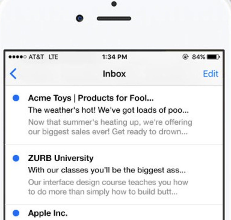 Most people decide to open an email based on two factors, the sender name and the subject line. Mobile email clients and devices often truncate subject lines and sender names, leading to sometimes hilarious but frequently disastrous results. Cringeworthy, right? We send a lot of email here at ZURB, and we needed a way to help compose perfect subject lines quickly and easily. Unable to find anything that fit the bill, we created TestSubject. TestSubject is a simple tool for testing how your email subject line and sender name look on the most popular mobile devices and email clients. Just copy and paste your text and you’ll get instant previews. Test before you send for more peace of mind. Test how your subject line displays on the most popular mobile devices and email clients. View how your sender name displays on the most popular mobile devices and email clients.