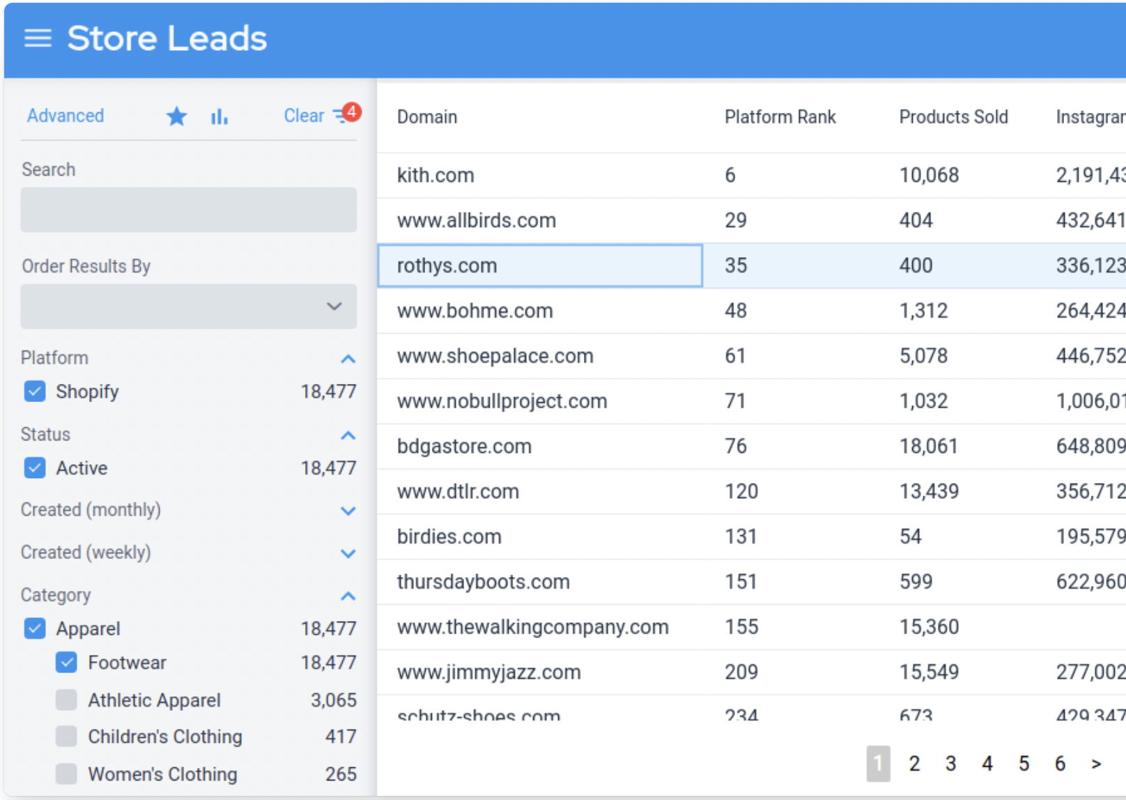 Ideal for lead generation, data enrichment, market research and alternative investment data. Store Leads gives marketing agencies and app developers the information needed to succeed. Turbo charge your prospecting. On average, 110,000 new active stores are added every week. Our powerful segmentation features help to define the perfect audience. Augment your leads database to make better prioritization decisions. Take advantage of our CRM integrations or build your own enrichment solution using our API. Use our historical information to find trending stores, apps, technologies and industry verticals. Our data has proven invaluable to both public and private equity funds. Our database is updated weekly to ensure that our extensive set of attributes are timely and accurate. Use any combination of 60 search filters to segment the database and find just the right audience.