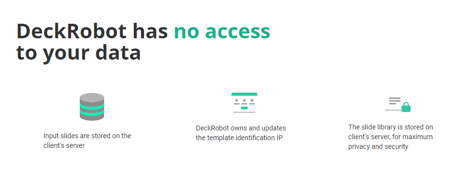 In 1 click turn your drafts into professional slides compliant with your corporate brand book. AI adjusts graphics with millions of slide examples for better story-telling. In 1 click format slide decks to be consistent with your brand. Use unlimited number of styles. You can format in your brand any slide deck you have (old documents, client materials, slides from the Web).
