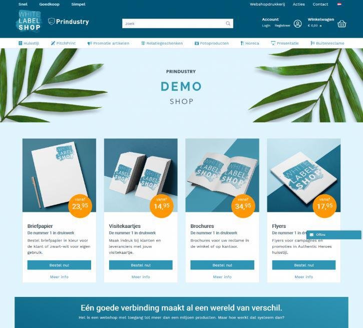 With a WhiteLabelShop you can quickly put a webshop on the market where your customers can order printed matter online. Convenience comes first with an automated buying and selling platform. There is a central system with everything you need for orders, quotations, invoicing, accounting, product information, stock and payment systems. The WhiteLabelShop offers access to a unique online print marketplace where print media specialists offer their print products. A WhiteLabelShop is a graphic webshop with an extensive web-to-print platform. As the owner of this webshop you are completely in control of the daily management. You choose what your webshop looks like and which print media products you offer in it. There is a central system with everything you need for orders, quotations, invoicing, accounting, product information, stock and payment systems. Prindustry is a facilitating partner that connects all desired products, partners and systems for you.