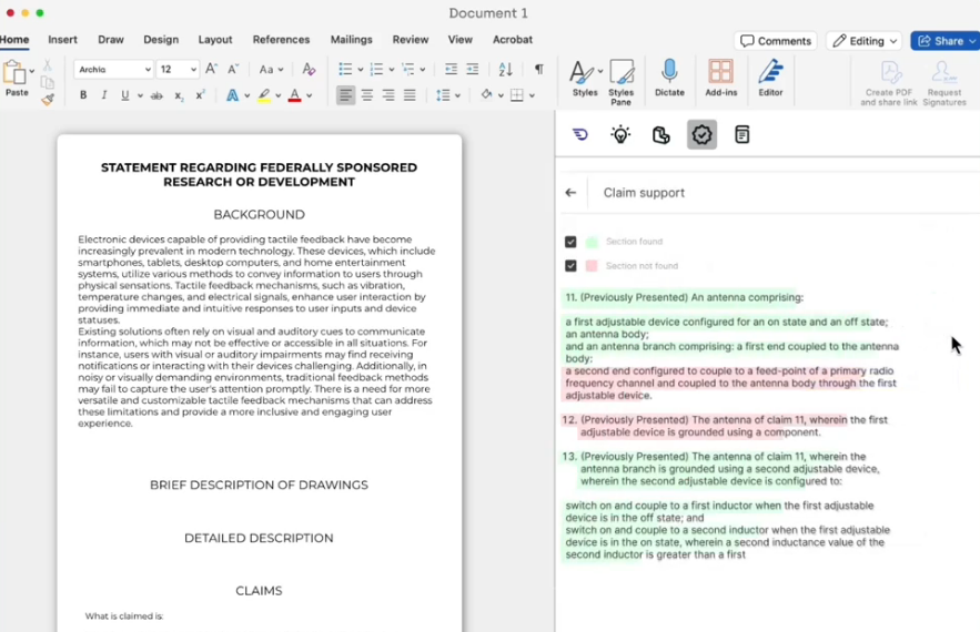 Your AI patent prosecution assistant, saving time to focus where it counts. Save time at every step of the prosecution process and deliver better patents for your client. Summarize, define, and clarify even the most technical inventions, to grasp them quickly and start drafting faster and with more precision. Never start from scratch again. Unlock your creativity on your claims and craft richer detailed descriptions. Never start from scratch again. Unlock your creativity on your claims and craft richer detailed descriptions. Understand the context of the objection in seconds. get suggestions to help you draft a clear and well-structured OAR. Focus on the client and let your AI assistant handle the tedious tasks. You are in a position to do more with the same resources, optimize cost, and improve the realization rate. We continuously strive not only to meet but to surpass established data security best practices.