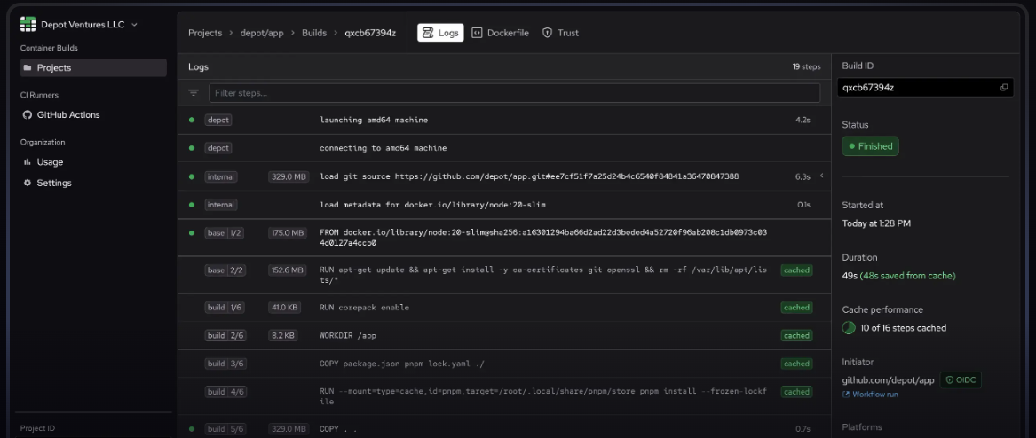 Depot is a cloud-based build acceleration platform designed to speed up software development workflows by dramatically reducing the time required to build container images and run continuous integration pipelines. It replaces traditional local or CI-based Docker builds with remote container builds executed on powerful cloud infrastructure, allowing developers to run the same build commands while offloading compute-intensive tasks to optimized remote machines. Using the Depot CLI, developers can simply replace docker build with depot build to execute builds on Depot’s infrastructure, which includes fast CPUs, high-speed networking, and persistent storage optimized for build workloads. It supports native multi-platform builds for both Intel and ARM architectures without relying on slow emulation, enabling teams to produce container images for multiple environments more efficiently.