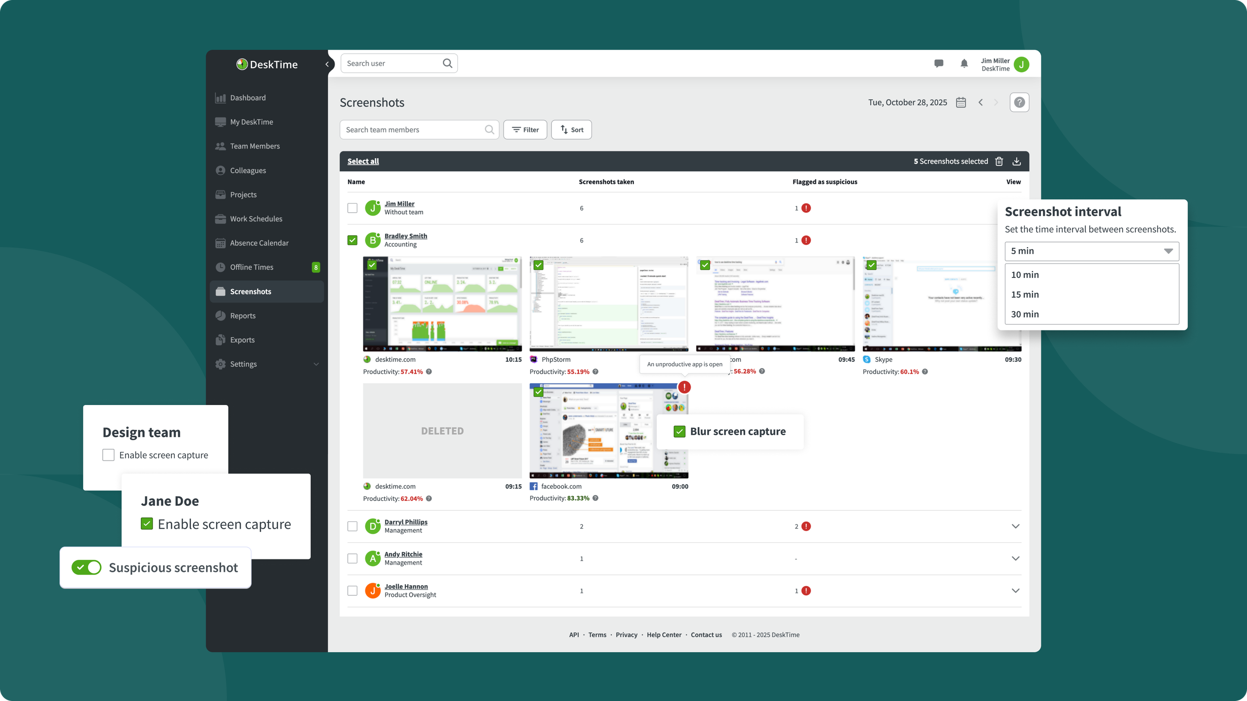 CategoriesDeskTime is a fully automated attendance tracking system that eliminates the need for manual punch clocks and paper timesheets. ⏱️ Designed for modern teams, it launches the moment an employee starts their computer, providing 100% accurate data on arrival and departure times. No more manual entry errors or forgotten logs! ✅ ✅ Real-Time Presence: See who is at work, who is late, and who is away at a glance. ✅ Automated Records: Generate daily, weekly, and monthly attendance reports effortlessly. ✅ Absence Management: Track sick days, vacations, and business trips in a single view. 📅 ✅ Idle Detection: Automatically detect breaks to ensure attendance logs reflect actual active work time. Transform your HR processes and replace outdated biometric systems with DeskTime’s seamless digital attendance tracking. 🚀 DeskTime offers a transparent and ethical approach to employee monitoring, providing managers with the visibility needed for remote and hybrid teams. 👁️ Our software focuses on data-driven performance rather than micromanagement, giving you the proof-of-work needed to maintain high standards. ✅ URL & App Tracking: See which websites and software your team uses throughout the day. ✅ Optional Screenshots: Capture screen snapshots at custom intervals with blurring for privacy. 📸 ✅ Activity Rates: Monitor keyboard and mouse activity to identify engagement levels. ✅ Private Time Mode: Build trust by allowing employees to pause all monitoring for personal tasks. 🔒 Identify your top performers, secure company resources, and ensure your remote team stays focused on what matters most. ⚙️ DeskTime simplifies complex workforce planning with its integrated Shift Scheduling and Work Schedules module. 📅 Perfect for teams with varying hours or remote shifts, DeskTime enables you to plan, assign, and manage your workforce within the same app used for time tracking. ✅ Shift Management: Create and assign shifts to ensure optimal staffing levels for every project. ✅ Preference Requests: Allow employees to request specific shifts, improving team satisfaction and flexibility. 👥 ✅ Template Creation: Save time by creating shift templates for repeating schedules. ✅ Attendance Comparison: Automatically compare scheduled shifts with actual work hours to identify coverage gaps or overtime. Ensure your team is always in the right place at the right time with DeskTime’s intuitive scheduling tools. ⚡ DeskTime provides a complete Time & Attendance solution that bridges the gap between workforce oversight and payroll accuracy. ⏱️ Combining automated punch-ins with detailed activity logs, it serves as the ultimate "virtual office" for global and local teams alike. ✅ Automated Punch Clock: Log arrival and departure times automatically via computer activity. ✅ Comprehensive Absence Calendar: Manage leave requests, sick days, and vacations in one place. 📅 ✅ Timesheet Automation: Generate audit-ready attendance records that are ready for payroll. ✅ Efficiency Scores: Compare attendance with productivity to see the real impact of your workforce. 📈 Simplify compliance, reduce administrative overhead, and get a 360-degree view of your workforce with DeskTime. 🚀 DeskTime is a high-performance, automated time tracking solution that helps teams and freelancers reclaim lost hours. ⏱️ By running silently in the background, it captures every billable second without requiring employees to start or stop a timer. This "set-it-and-forget-it" approach ensures 100% accuracy. ✅ Project Tracking: Assign time to specific tasks and clients to ensure precise billing and budget management. 💸 ✅ Productivity Analysis: Categorize URLs and apps to see exactly where your time goes. 📈 ✅ Document Title Tracking: Log specific files worked on for granular project insights. ✅ Detailed Reports: Export ready-made timesheets in .XLSX or .CSV for fast, error-free invoicing. Stop guessing your billable hours. Let DeskTime provide the data you need to boost your profitability by up to 30%. 🚀 |