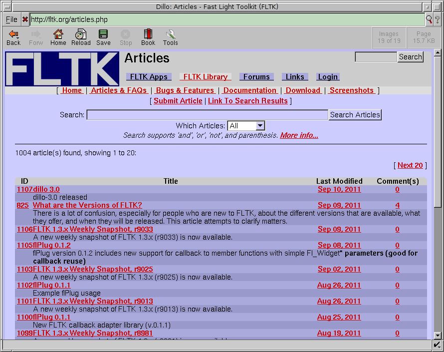 Dillo follows an evolving software model where each new version should be better than the previous one; there's no place for unstable releases, so just keep with the latest one: dillo-3.0.5. Dillo is a multi-platform graphical web browser known for its speed and small footprint. Dillo strives to be friendly both to users and developers. Dillo helps web authors to comply with web standards by using the bug meter. Image buffer/cache improvements to make dillo speedier, placeholder attributes for input and textarea elements (today's web is filled with INPUT boxes that are not otherwise labeled), better notification when user domain settings block page redirect (a message in the browser window instead of on the terminal), and an assortment of other fixes and changes.