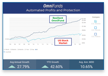 OmniFunds is an automated investing service that continuously reads the “personality” of the market and uses proprietary algorithms to perform selective stock switching, automatically moving funds into equities with the highest likelihood of appreciating over the next week or month while employing downside protection when market conditions turn negative. It constantly monitors market indicators to decide when to rotate into defensive stocks, trigger circuit breakers, or buy inverse ETFs during extreme declines, then revert to standard investments once proprietary signals indicate it’s safe. Users retain full control, seeing every recommended trade before execution and getting a record of all activity, while benefiting from automated protection that aims to avoid losses and reduce anxiety about market swings.