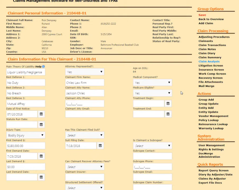 Claims and Litigation management software for Captive or Risk Retention Group property and casualty claims. Direct Claim Solution is a complete system with claims, policy and vendor management for Self-Insured, Captive or Risk Pool programs. Offers industry specific tools for investigating and analyzing law as well as coverage. Modules for litigation management, subrogation and loss recovery as well as document management included. Merge feature makes for easy letter or email creation.