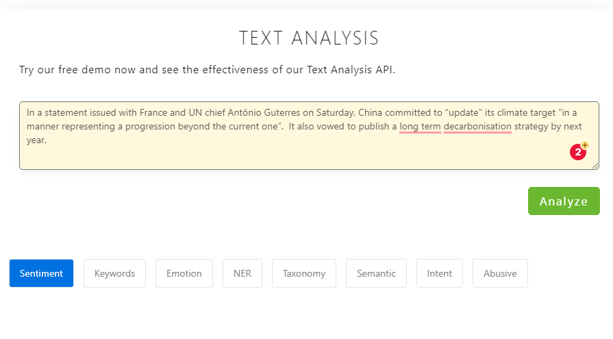 Komprehend AI APIs are the most comprehensive set of document classification and NLP APIs for software developers. Our NLP models are trained on more than a billion documents and provide state-of-the-art accuracy on most common NLP use cases such as sentiment analysis and emotion detection. Try our free demo now and see the effectiveness of our Text Analysis API. Maintains high accuracy in the real world, and brings out useful insights from open-ended textual data. Works on a variety of data, ranging from finance to healthcare. Supports private cloud deployments via Docker containers or on-premise deployment ensuring no data leakage. Protects your data and follows the GDPR compliance guidelines to the last word. Understand the social sentiment of your brand, product, or service while monitoring online conversations. Sentiment analysis is contextual mining of text which identifies and extracts subjective information in the source material.