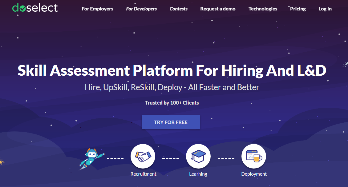 Recruiters can create assessments within minutes to evaluate thousands of candidates, thanks to DoSelect’s ready-to-use library with 50000+ questions spread across 25+ Coding Languages, Fullstack, Data science, Ai/ML, Database, Automation Testing, Front End Framework, Aptitude & many other technologies. The evaluation engine performs a deep skill quality analysis to help you refine your candidate list, with the skill insights that are critical to a job function. From L&D heads to training managers, DoSelect’s Learning and skill assessment engine is helping organizations create skill inventory through hands-on practice tests, real-world skill evaluations tests mapping, competencies, streamlining the training needs identification, faster resource deployments, better project deliveries and most importantly, a superior business outcome.
