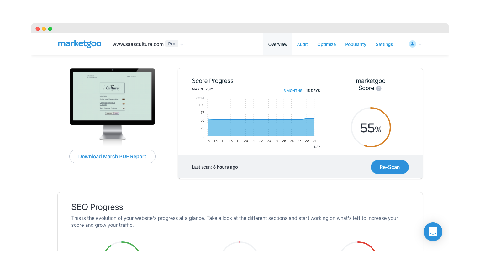 marketgoo helps small businesses grow and achieve online success by providing easy, guided SEO tools to help increase traffic and search rankings.