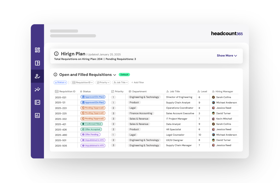 Hiring Managers can view, change, or request headcount using a portal designed to streamline every aspect of the workflow