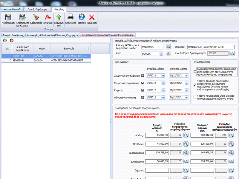 The most successful application on taxation and document management in the Greek market. It has unlimited capabilities and incomparable design quality. Under the guarantee of the Scientific Department of Epsilon Net. The most complete and accurate clearance of personal income tax, with direct adjustment of calculations with the latest coding of Income Tax Code. Supply of multiple informative printouts for the calculation of installments of income tax payout, calculation of proofs and receipts, printout with comparative sizes on incomes, expenses and proofs in comparison to the previous fiscal year and complete paycheck with the analytical reflection of all the amounts included in the calculation. Supply all taxation documents to every accountant and accounting office. Data extraction from the registrations, automatic calculation and filling out of VAT-VIES, Intrastat and Personal Income Tax Forms.